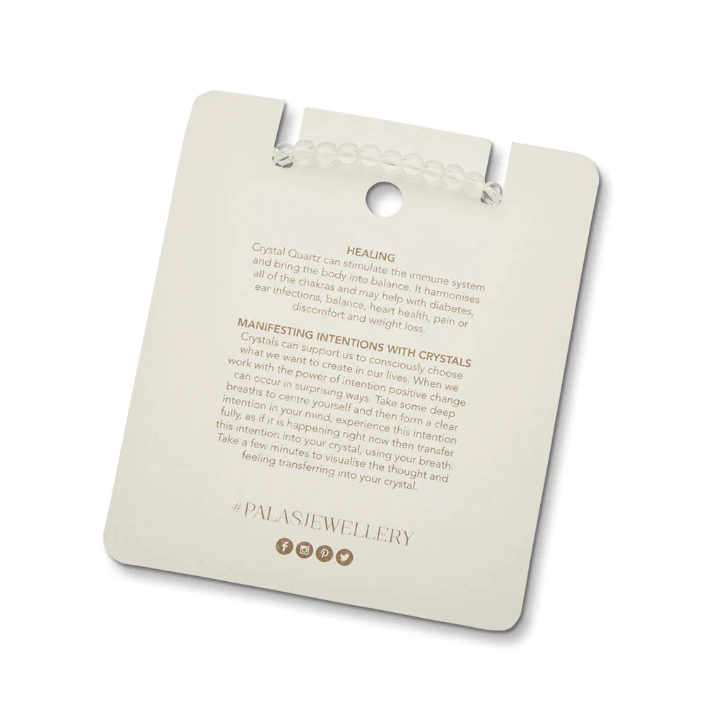 Meaning: healing Crystal Quartz is believed to be the ‘master healer’ and can amplify energy and thought. It is believed to absorb, store, release and regulate energy and clear the mind of negativity to inspire physical, emotional and spiritual well being.