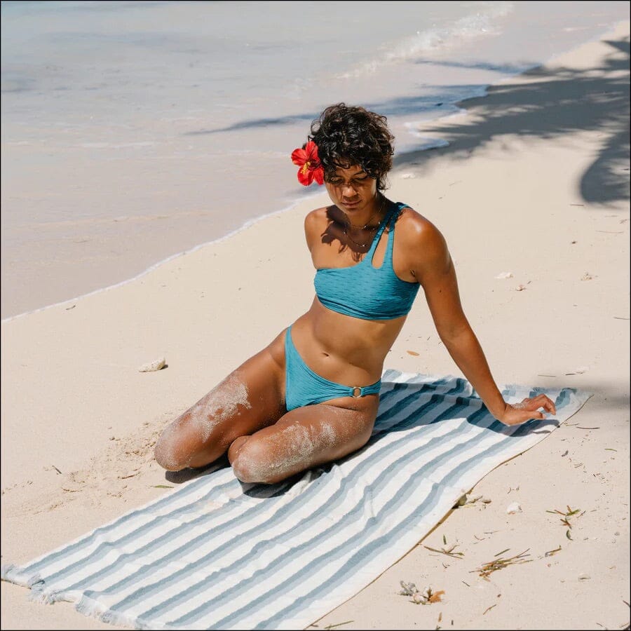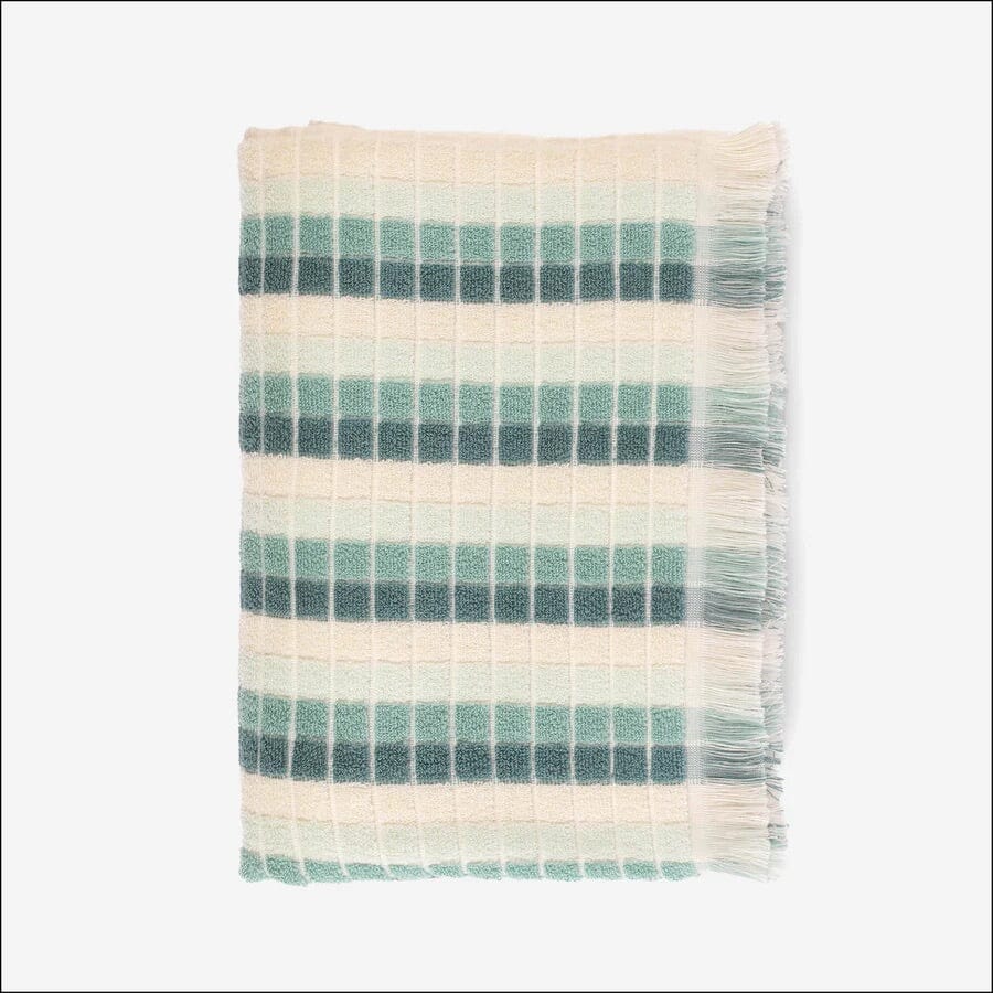Step back in time with Horizon. This retro-inspired towel combines luxe terry with debossed squares and nostalgic 70s-style stripes. Perfect for those who love a retro vibe with a modern twist.